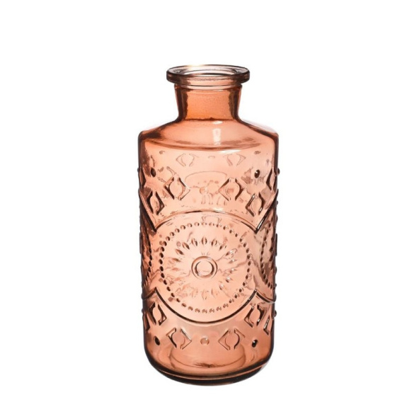 Ozdobna, mahoniowa, szklana butelka z tłoczeniami