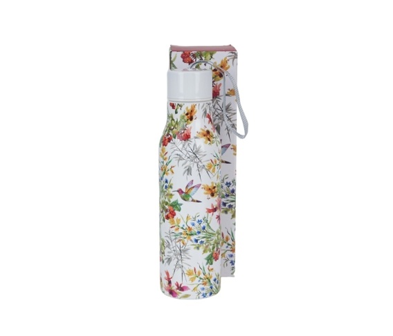 Butelka termiczna do herbaty kawy z serii Linnea z kolekcji Kwiaty Classics. Butelka o pojemności 500 ml (pojemność liczona po rant butelki). Termos zdobiony motywem motywem malowanych kwiatów w wyrazistych kolorach oraz uroczego kolibra. Butelka wykonana ze stali nierdzewnej 18/8, doskonała do zimnych i ciepłych napojów zabieranych do pracy, szkoły czy na podróż. Zapakowana w ozdobny kartonik.