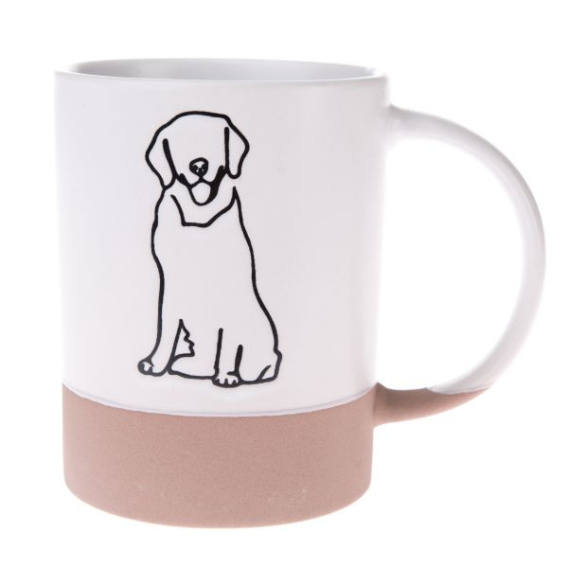 Ceramiczny kubek o pojemności 390 ml (pojemność liczona po rant kubka) z serii Casa de Engel czeskiej firmy Dakls. Produktem, który spodoba się zwłaszcza miłośnikom nowoczesnego i radosnego designu, jest kubek do herbaty lub kawy z motywem psa. Kubek ten został wykonany z ceramiki. Kubek w kolorze białym, matowym na którym widnieje czarny kontur uroczego, dużego psa. Dolna część kubka jest beżowa, matowa, nieszkliwiona, co dodaje mu uroku. Ciekawy wzór kubka na pewno przykuje niejedno spojrzenie.