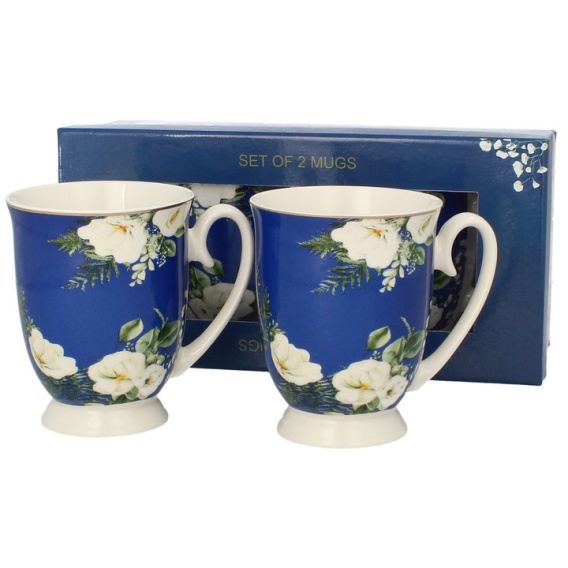 Komplet 2 kubków na stopce wykonany z dobrej jakości porcelany zdobionej motywem białych kwiatów na niebieskim tle marki Livello. Pojemność – 340 ml (pojemność liczona po rant kubka). Produkt oryginalny - dopuszczony do kontaktu z żywnością.