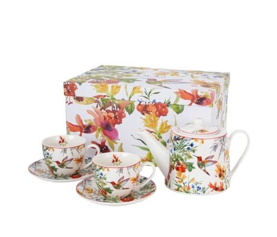 Kolekcję zdobi urzekający motyw malowanych kwiatów w intensywnych barwach, wśród których skrywa się delikatny koliber. To wzór pełen życia, energii i subtelnego uroku, który sprawia, że każdy łyk herbaty przenosi w świat natury.