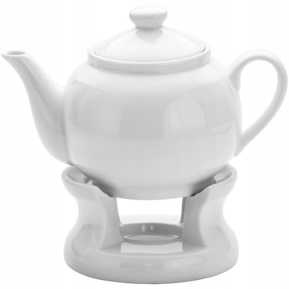 • Dzbanek na herbatę z podgrzewaczem porcelana biały 950 ml