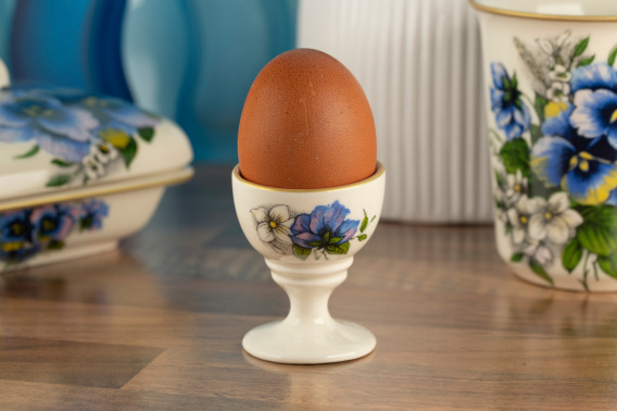 Kieliszek w kolorze kremowym. Ozdobiony motywem bratków. Wykonany z użytkowej ceramiki szlachetnej. Wyprodukowany w Polsce przez fabrykę ceramiki szlachetnej w Mieroszowie. Ceramikę można myć w domowych zmywarkach oraz używać w mikrofali.