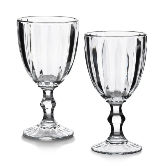 Wykonane z grubego, bezbarwnego szkła sodowego, zachwycają solidnością i estetyką. Subtelne pionowe tłoczenia pięknie załamują światło, a gruba, dekoracyjna nóżka sprawia, że kieliszek pewnie i wygodnie leży w dłoni.