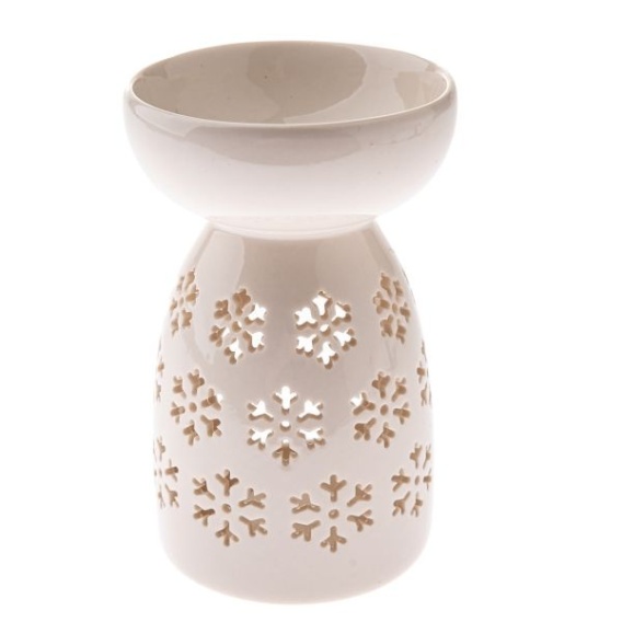 Kominek na wosk olejek zapachowy biały śnieżynki na święta
