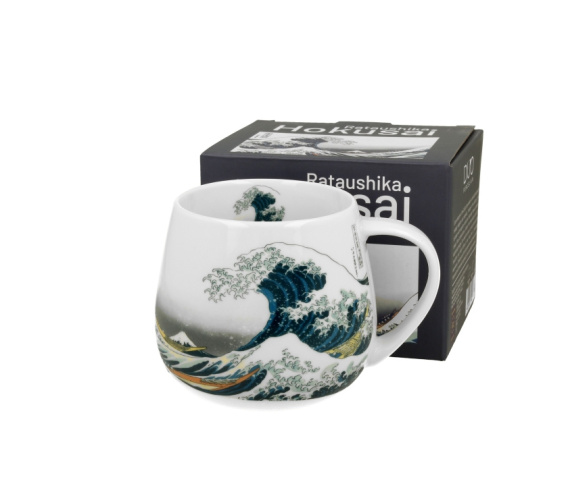 Kubek The Great Wave by K. Hokusai w kształcie baryłki wchodzący w skład serii Art Gallery. Kubas wykonany został z porcelany New Bone. Pojemność kubka 430 ml (pojemność liczona po rant kubka). Kolekcja wykonana z białej porcelany zdobionej fragmentem reprodukcji drzeworytu "Wielka Fala w Kanagawie" Hokusai Katsushika.