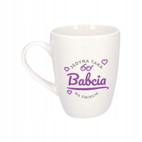 Są prezenty, które nie muszą być duże, żeby miały ogromne znaczenie. Ten biały kubek z napisem „Jedyna taka Babcia na świecie” został stworzony właśnie po to, by w prosty, a zarazem niezwykle ciepły sposób powiedzieć to, co najważniejsze. Delikatny szaro-fioletowy napis otoczony drobnymi, fioletowymi serduszkami oraz subtelnym motywem okularów tworzy wzór pełen uroku, lekkości i serdecznego charakteru. Całość wygląda elegancko, ale z nutą humoru – dokładnie tak, jak Babcia, która potrafi rozgrzać serce jednym spojrzeniem.