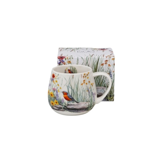 Kubek baryłka July wchodzący w skład serii Kwiaty Classic, wykonany z porcelany New Bone. Pojemność kubka 430 ml (pojemność liczona po rant kubka). Kolekcja wykonana z białej porcelany zdobiona idyllicznym motywem małego ptaszka, stojącego na kamykach przy oczku wodnym. Otoczony bujnymi przybrzeżnymi roślinami i kolorowymi kwiatami, tworzy unikalną kompozycję relaksu i harmonii z przyrodą. Można używać w zmywarce oraz kuchence mikrofalowej. Kubek zapakowany w ozdobny kartonik.