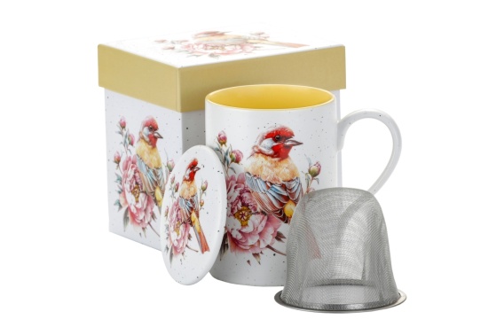 Kubek do herbaty z zaparzaczem na prezent ptak ceramika mat