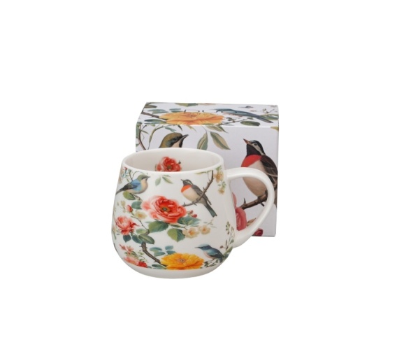 Kubek baryłka April wchodzący w skład serii Kwiaty Classic, wykonany z porcelany New Bone. Pojemność kubka 430 ml (pojemność liczona po rant kubka). Kolekcja wykonana z białej porcelany zdobiona delikatnym motywem różanych krzewów w intensywnych odcieniach czerwieni, bieli i żółci. Na kwiatowe gałązki zostały subtelnie wkomponowane dwa urocze, kolorowe ptaszki. Można używać w zmywarce oraz kuchence mikrofalowej. Kubek zapakowany w ozdobny kartonik.