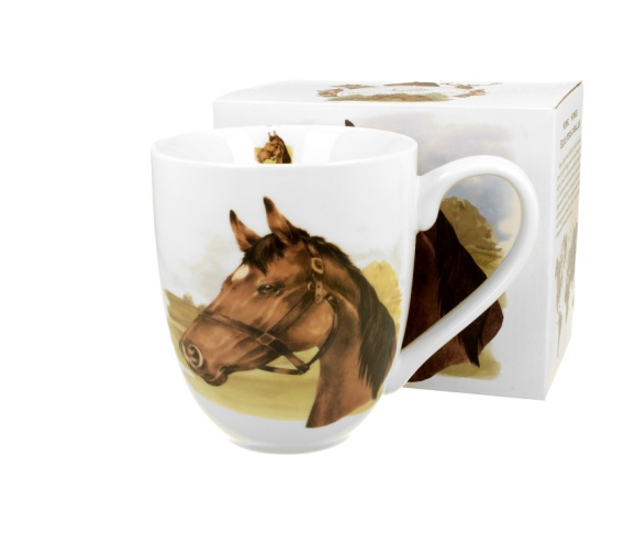Zdobiony spektakularnym portretem majestatycznego brązowego konia, kubek przyciąga wzrok i przywołuje obraz dzikiej, wolnej natury. Koń z wyrazistymi, pełnymi życia oczami, długą, falującą grzywą i dynamiczną sylwetką, jest centralnym punktem kompozycji, a całość jest otoczona malowniczym tłem, przypominającym spokojną, kwiecistą łąkę. Taki design emanuje siłą, gracją i niepowtarzalnym pięknem, które idealnie współgra z harmonią natury.