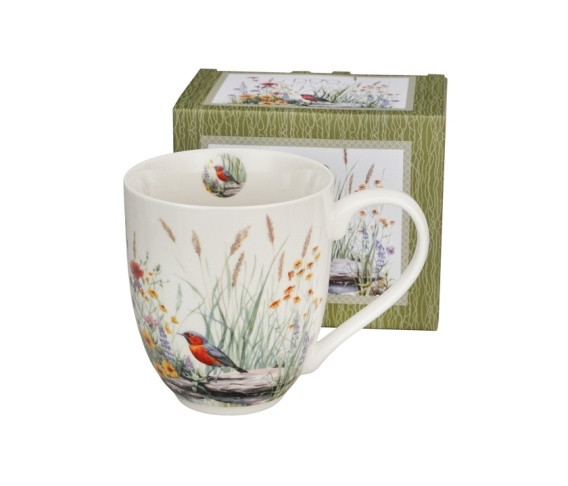 Duży kubek z serii July wchodzący w skład kolekcji Kwiaty Classic. Kubas o pojemności 1000 ml (pojemność liczona po rant kubka). Dzięki swojej dużej pojemności doskonale sprawdzi się również do podawania zup czy płatków śniadaniowych. Kolekcja zdobiona idyllicznym motywem małego ptaszka, stojącego na kamykach przy oczku wodnym. Otoczony bujnymi przybrzeżnymi roślinami i kolorowymi kwiatami, tworzy unikalną kompozycję relaksu i harmonii z przyrodą. Można używać w zmywarce oraz kuchence mikrofalowej. Kubek zapakowany w ozdobny kartonik.