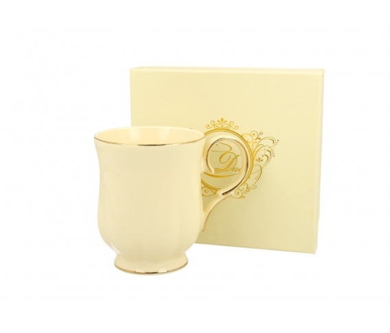Kubek porcelanowy do herbaty Clark ecru złoty na prezent