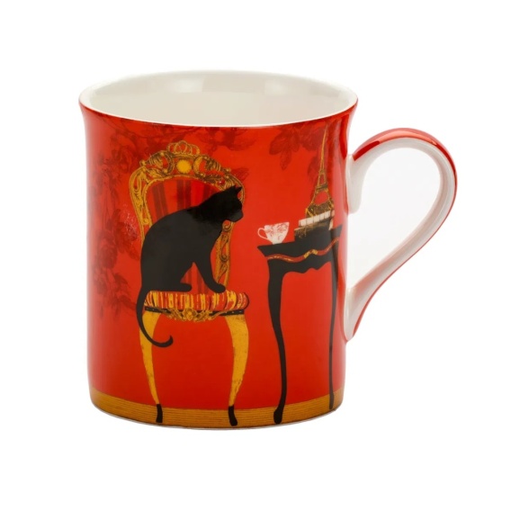 Kubek prosty zdobiony wzorem czarnego kota z serii Koty marki Marco Polo. Wykonany z najwyższej jakości porcelany tzw. porcelany kostnej. Kubek jest lekki, co stanowi jego dodatkowy atut. Pojemność kubka 330 ml (pojemność liczona po rant kubka).