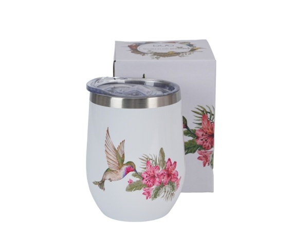 Zdobiony motywem koliberka uchwyconego w locie wśród egzotycznych kwiatów, zachwyca harmonią barw i energią, która przenosi Cię wprost do tropikalnego ogrodu. To naczynie, które nie tylko dba o temperaturę napoju, ale także o Twój nastrój.