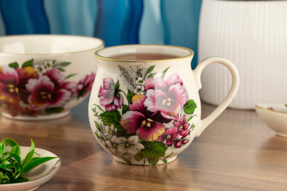 Ceramiczny Kubek Mieroszów z motywem bratków umili Ci popołudniowy relaks przy ulubionej herbacie albo aromatycznej kawie.