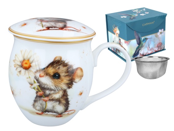 Kubek z zaparzaczem „Myszka w ogrodzie” – codzienna chwila herbaty z nutą uroku 🐭🌼