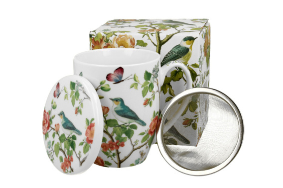 Kubek z zaparzaczem sitkiem do herbaty ptaki na gałęzi