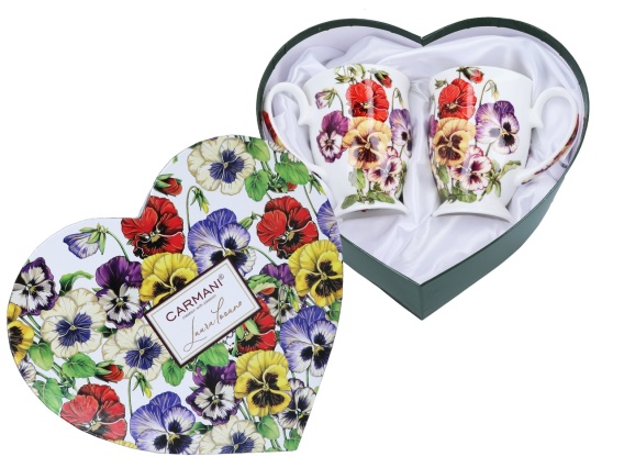 Komplet 2 kubków „Bratki” w pudełku w kształcie serca – porcelana, która zamienia zwykłe chwile w piękne wspomnienia 💜🌸💝