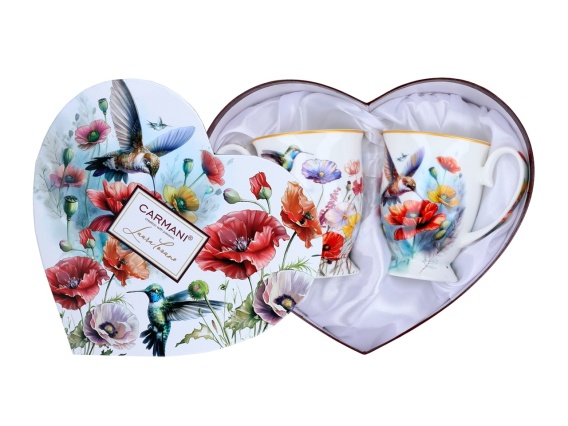 Komplet 2 kubków „Kwiaty i kolibry” w pudełku w kształcie serca – porcelana, która opowiada historię lekkości i zachwytu 🌺🐦✨