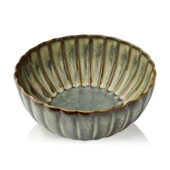 Zieleń, która koi. Forma, która zachwyca. Evie Green od Affek Design by Mondex to porcelanowa misa, która wnosi do wnętrza świeżość lasu i nutę stylowej elegancji. Jej wyjątkowy zielono-brązowy odcień, przypominający mech w porannym słońcu, przyciąga wzrok, a pionowe ryflowania subtelnie podkreślają kształt i głębię.