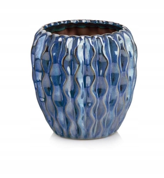 Osłonka ceramiczna doniczka mrozoodporna niebieska ozdobna
