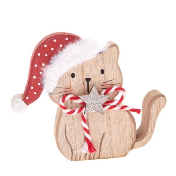 Drewniany kotek świąteczny Dakls – mała figurka, wielka dawka świątecznego uroku 🐱