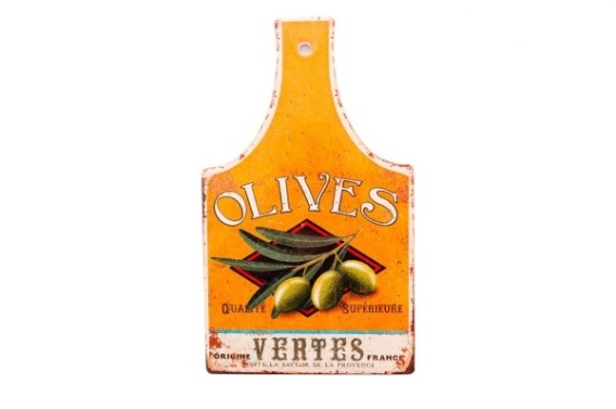 Podkładka korkowa z rączką z serii Retro. Deska wykonana jest z ceramiki, połączona z korkową podstawą. Podstawka ma kształt prostokąta o wymiarach 17 cm x 28,5 cm. Ozdobiona została motywem gałązki z zielonymi oliwkami oraz napisem "Olives" na pomarańczowym tle, kolorystyka oraz wzór wpasują się w styl retro. Idealna pod gorący garnek, patelnię lub dzbanek, świetnie sprawdzi się też podczas krojenia, jak i eleganckiego serwowania potraw. Zapakowana w białe pudełko z okienkiem.