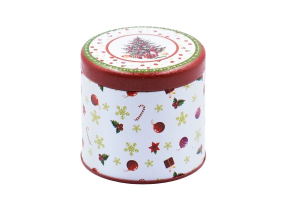 Puszka metalowa świąteczna okrągłą do herbaty ozdobna
