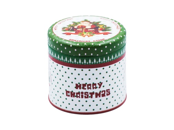 Puszka świąteczna metalowa okrągłą do herbaty ozdobna