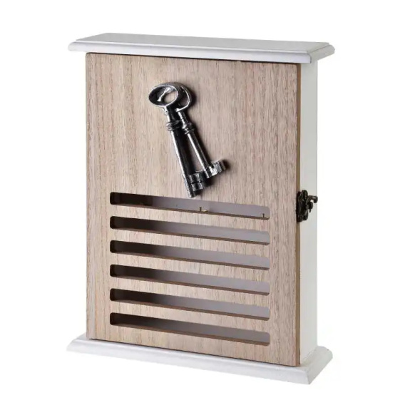 Jej biało-brązowy design to połączenie klasyki i ciepła, które idealnie wpisze się w każde wnętrze – niezależnie, czy mieszkasz w nowoczesnym lofcie, czy przytulnym mieszkaniu z duszą. W środku czeka na Ciebie sześć metalowych haczyków, gotowych pomieścić wszystkie klucze – i te ważne, i te, których przeznaczenia nikt już nie pamięta.
