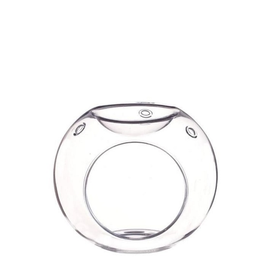 Uroczy kominek na wosk lub olejek zapachowy wykonany został ze szkła. Kominek jest w kształcie kuli, przeźroczysty, bez zdobień. Wysokość kominka 8,5 cm.