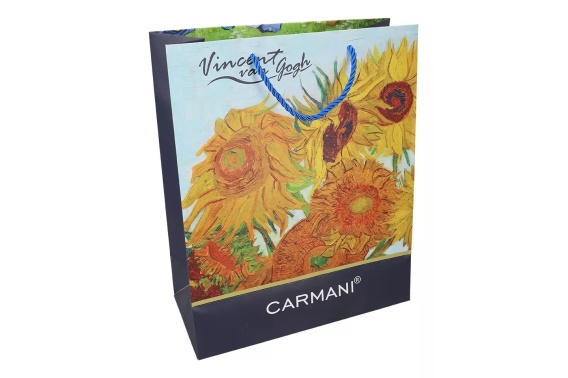 Elegancka torebka na prezent zdobiona motywem z obrazów Vincenta Van Gogha Irysy oraz Słoneczniki marki Carmani.