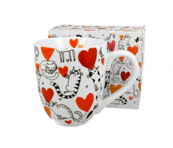 Kolekcja zdobiona motywem rysowanych domowych kotów w otoczeniu czerwonych serc. Całość utrzymana w filuternym klimacie oraz klasycznej kolorystyce.