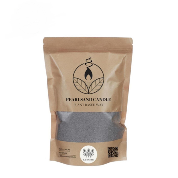 Świeca perłowa w granulacie, stearyna szara o zapachu lawendy (lavender) - zapach lawendy jest świeży i ziołowy. Roślinny wosk w formie kuleczek. Jest to naturalny wosk pochodzenia roślinnego, zapakowany w opakowanie o gramaturze 400 gramów, które zawiera również 4 bawełniane knotki do samodzielnego tworzenia świec.