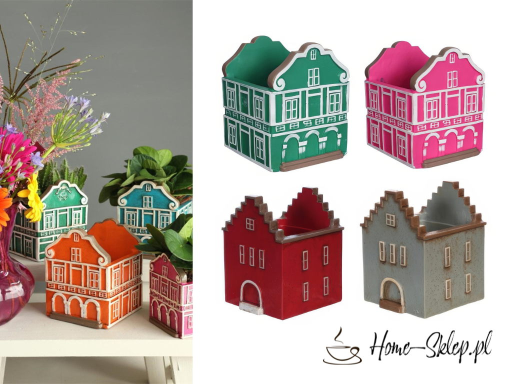Ceramiczne osłonki na doniczki w kształcie domków to coś więcej niż praktyczne dodatki. To pełne charakteru ozdoby, które wprowadzają do pomieszczenia ciekawy klimat: połączenie rustykalnego ciepła z retro oryginalnością i folkowym kolorem. Ich kształty przypominają XIX-wieczne kamieniczki albo kamienne domki rodem z sielskiej angielskiej wsi. Dzięki tej uroczej formie i kolorystyce nawet najmniejszy kącik z roślinami zyskuje duszę. To idealna ozdoba dla tych, którzy kochają nietypowe dekoracje i chcą wprowadzić do wnętrza swojego domu czy mieszkania odrobinę oryginalności.